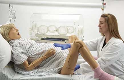 • Maternal and Neonatal Birthing Simulations Imulation sysytem designed to present the complex needs of a growing demographic with unique health and physical challenges. • Creates a new level of physical realism to allow a near - human connection and enhance immersion in training . Designed to provide a comprehensive and economical birthing experience from prenatal to postnatal delivery scenarios.